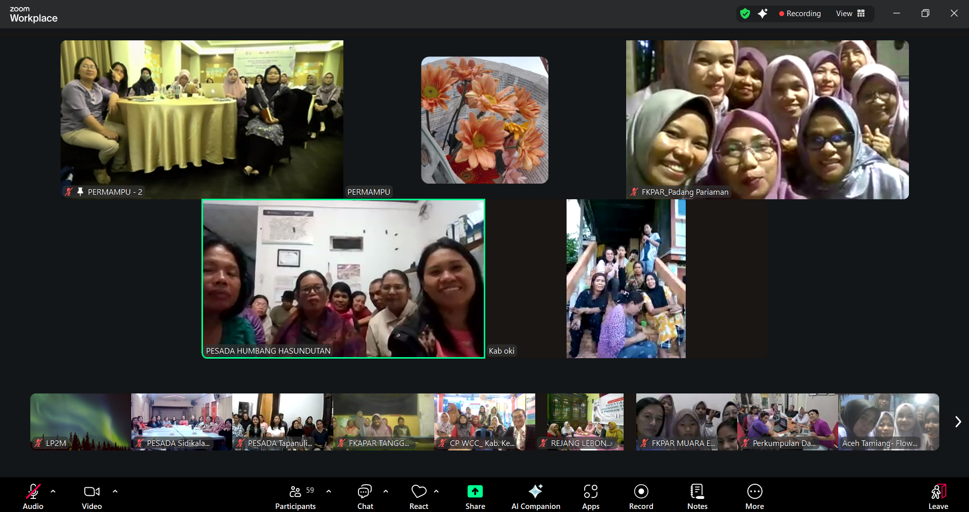 Diskusi ini digelar secara hybrid pada 24 September, melibatkan 391 peserta dari 30 titik Zoom di 37 kabupaten/kota di delapan provinsi se-Sumatera. Para peserta terdiri dari 369 perempuan akar rumput, 37 perempuan muda, 3 perempuan dengan disabilitas, dan 22 laki-laki.